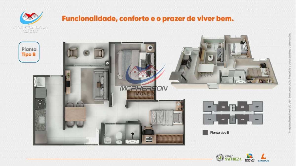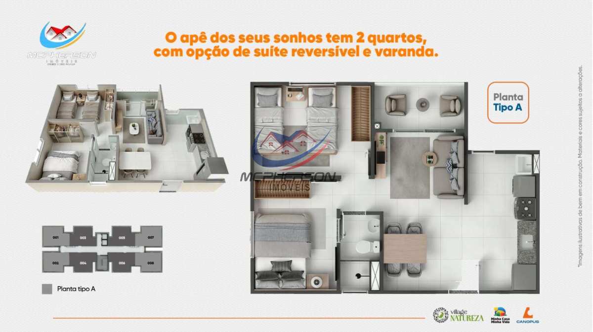 Apartamentos de 2 quartos com varanda no Minha Casa Minha Vida.