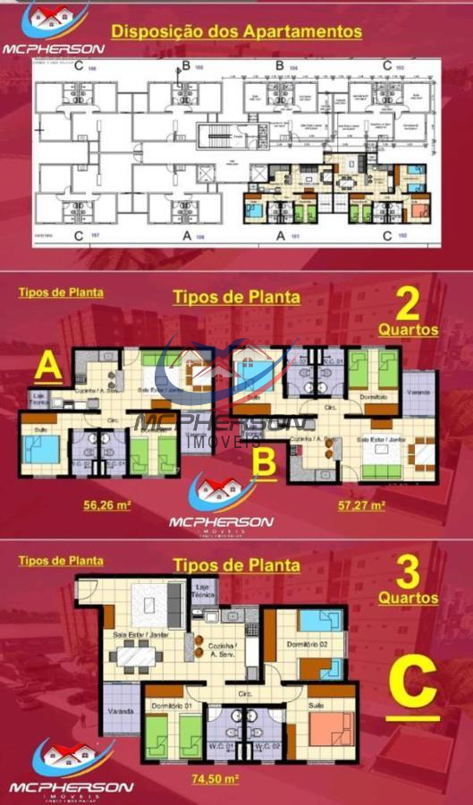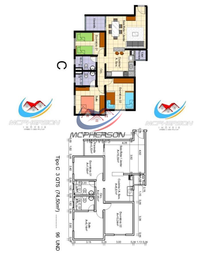 3 quartos com 1 Suíte (74,50 m²).